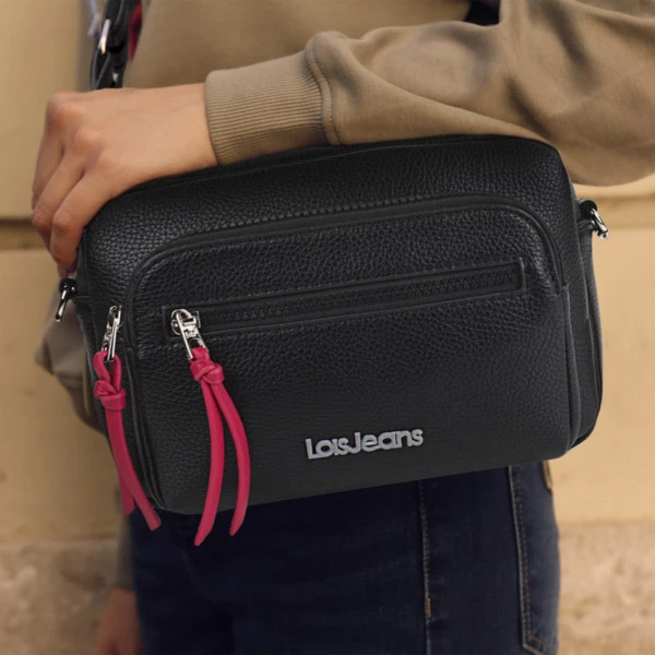 Bolso bandolera de mujer con asa larga regulable marca LOIS. Diseñado en España. Bolso Pequeño Mujer – Bolsos Mujer Bandolera. Exterior: Piel sintética la cual cumple con los standars Eco-friendly. Interior: Forro al tono y etiqueta interior representativa de la marca. Bolso Bandolera Mujer Pequeño. A destacar el logo al tono , las cremalleras inyectadas , el toque de color en el cursor y la cinta decorada. Bolso Bandolera Mujer Pequeño. A destacar el logo al tono , las cremalleras inyectadas , el toque de color en el cursor y la cinta decorada. Bolsos Pequeños Mujer – Bolsos Mujer Verano. En el interior hemos optimizado el espacio al máximo para llevar todo lo necesario sin perder detalles. Medidas: 22x15x7,5 cm. Peso: 0,47 kg. Material: Polipiel.