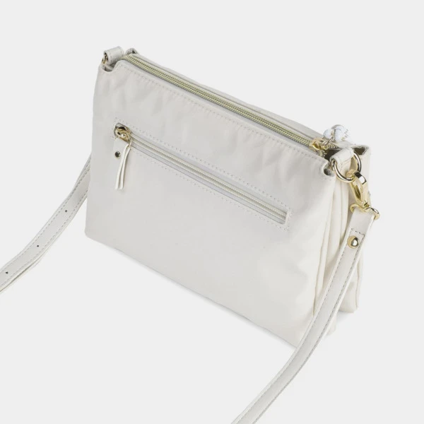 Monedero triple con bandolera desmontable y ajustable para mayor versatilidad.