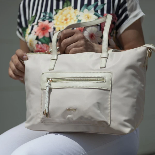Bolso shopper con bandolera desmontable y ajustable para mayor versatilidad.