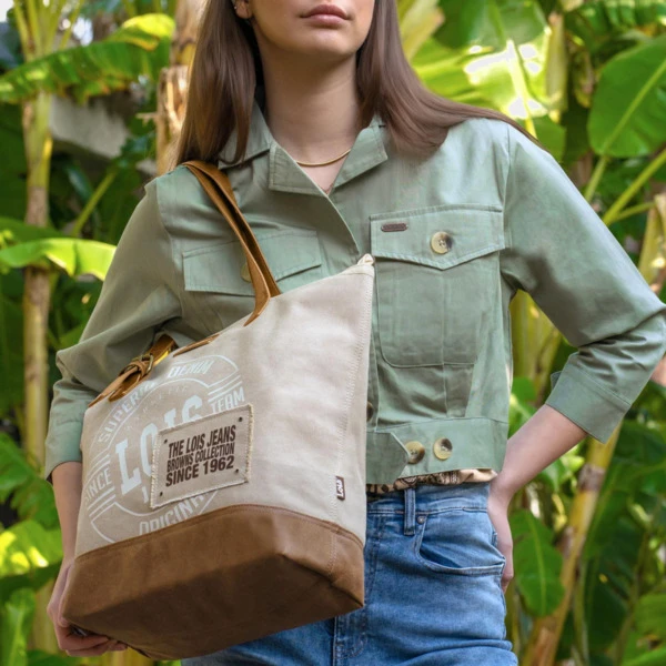 Lois presenta su nueva colección BROWNS, diseño desenfadado de moda para combinar con tu look más casual. Práctico y ligero, ideal para usar todos los días. Bolso Mujer Grande de la marca LOIS. Diseño desenfadado original, único y exclusivo de la firma. Tu complemento ideal para uso diario. Medidas: 43x34x14 cm. Material: Canvas-Polipiel.