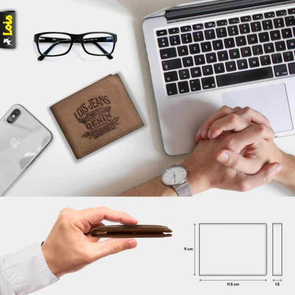 Cartera para hombre horizontal de cuero piel genuina. Monedero, billetero y tarjetero de la firma Lois