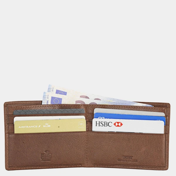 Cartera departamento para billetes y capacidad para 6 tarjetas. Monedero slim con solapa para que el cambio vaya seguro («secret pocket»).
