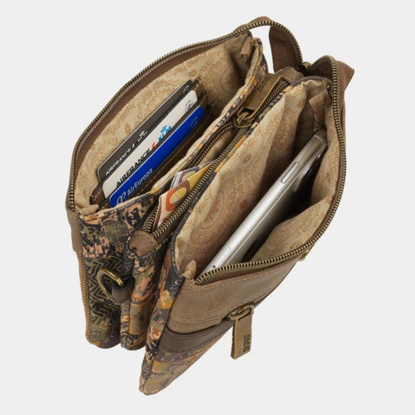Monedero triple de la marca SKPAT con asa de mano adicional. Cierre con cremallera. Bolsillo delantero con cremallera. Tiene tres compartimentos interiores, el central con cremallera. Capacidad para tres tarjetas y documentación. Forro interior estampado con el logo de la marca.