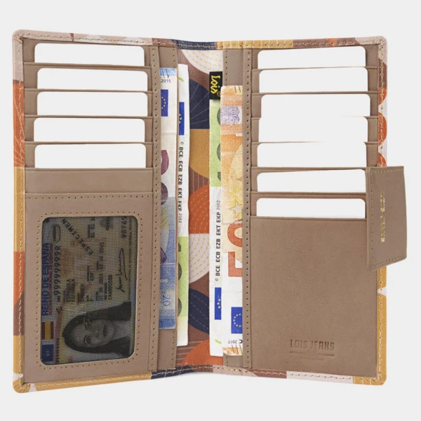 Nuevas colecciones de carteras y monederos de la marca Lois. Diseño juvenil moderno y combinable para tu look más casual.Billeteras para Mujer. Cartera, monedero, billetero y tarjetero de piel genuina para mujer de la firma LOIS . Diseñada en España. Monedero Mujer cremallera , Cartera Mujer Pequeña. Características Especiales: Cierre a presión. Portamonedas trasero con cierre de cremallera. Con capacidad para 12 tarjetas. Con 1 ranura visor para DNI. Con 4 departamentos para billetes. Con protección RFID. Monederos Pequeños Mujer. Características principales: Ideal para uso diario. Muy completo. Resistente al desgaste. Materiales y costuras de alta calidad. Monedero Tarjetero Mujer. MATERIAL: Piel genuina. A destacar el logo dorado , el doble pespunte y la combinación de colores. Medidas: 17,3×9,5×1,5 cm. Material: Piel.