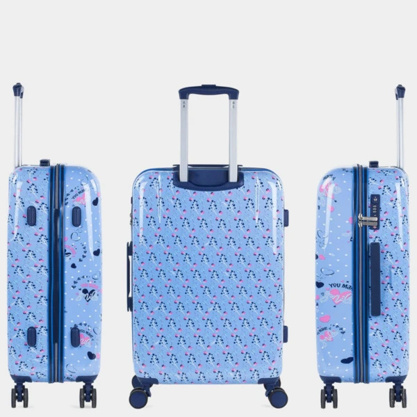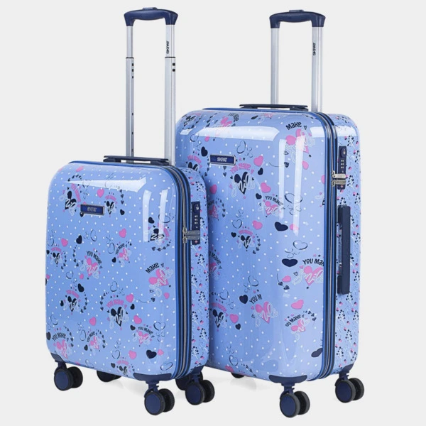 Set de dos maletas de viaje tamaño 50/60 realizadas con ABS/Policarbonato, un material ligero y a la vez muy resistente que permite la impresión de cualquier diseño, consiguiendo un acabado brillante precioso, este detalle da un aspecto a la maleta que no te deja indiferente.