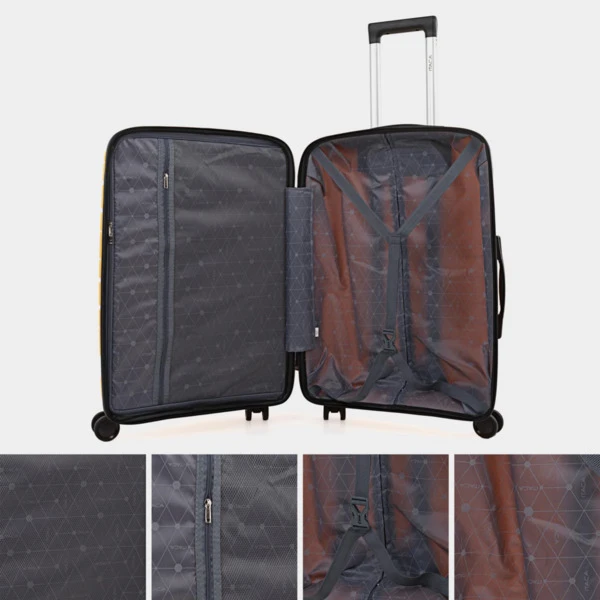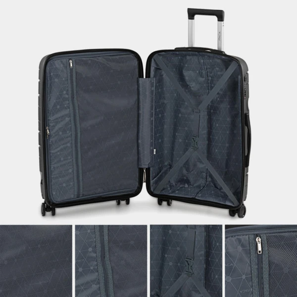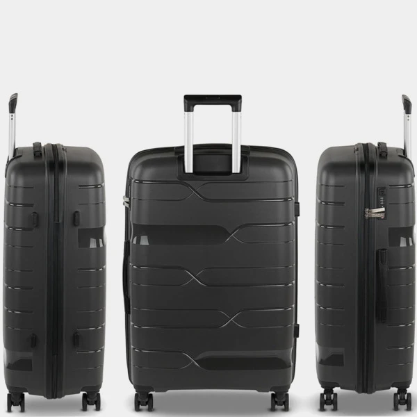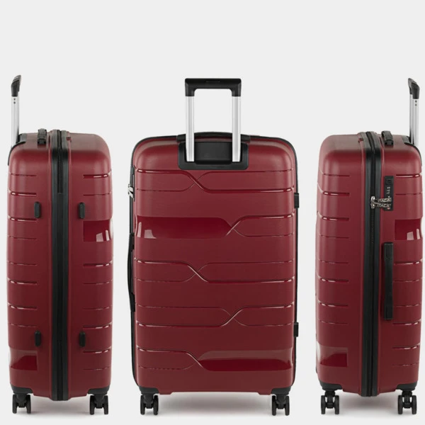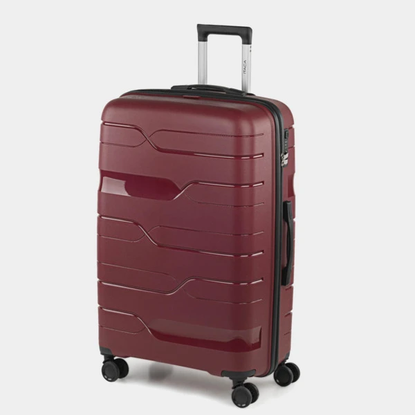 Maleta de viaje grande con ruedas de la firma ITACA fabricadas con Polipropileno PP. Hemos utilizado Polipropileno de alta tecnología. Este material es ultra resistente y súper ligero, el mejor material sintético para la fabricación de maletas. Alta resistencia y durabilidad. Combinación ideal para viajes largos. Son las maletas más recientes y de mayor calidad. la evolución de la marca ITACA continua buscando la mejor calidad a el mejor precio. Esta maleta te ofrece una combinación ideal para todo tipo de viajes, de fin de semana, cortos y largos. Para homologar internacionalmente, hemos incorporado la cerradura TSA, de esta forma no tendrás problemas en ninguna aduana de mundo. Características principales: Dimensiones: Grande XL: Total: 55 x 77.5 x 33 cm. Volumen: 110 L. Peso: 4,60 kg. Exterior: Material: Polipropileno PP texturizado antirayaduras y antiabolladuras. Candado de combinación integrado TSA de 3 dígitos para mayor seguridad y homologación internacional