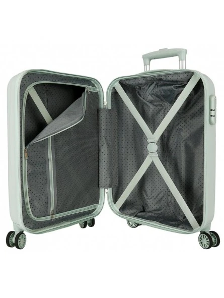 Maleta de cabina de 38x55x20 cm. (ruedas y asa incluida). Tiene una capacidad de 34 litros y pesa 2,6 kg. Fabricada en ABS, un material resistente y ligero.