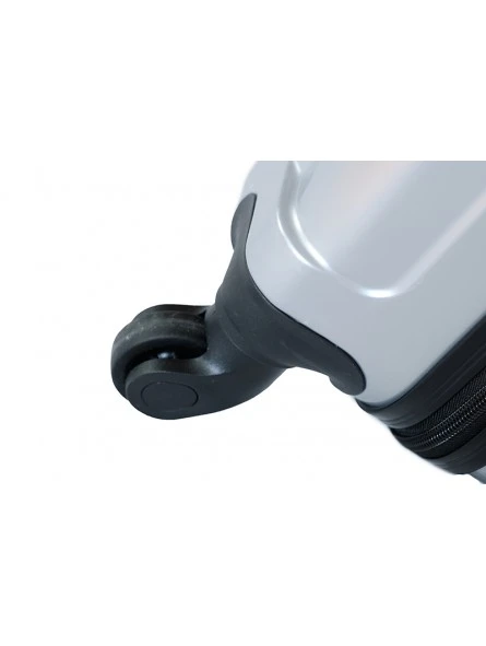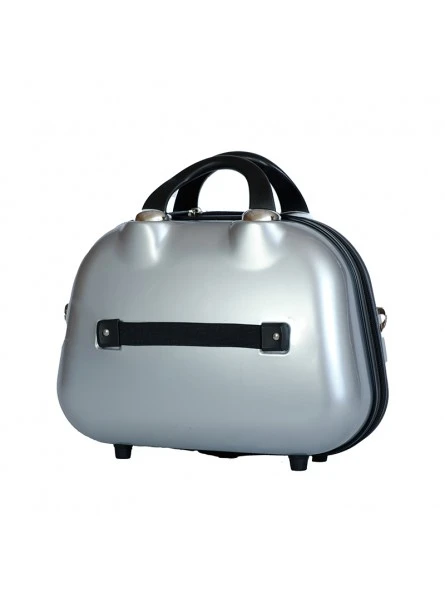 Rígida con 4 ruedas giratorias 360º y con candado de combinación integrado e el lateral, más un neceser a juego también rígido el cual se puede adaptar a la maleta, llevar a mano, con medidas 35x28x14 cm.
