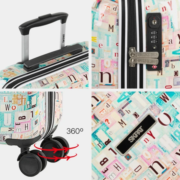 Maleta de diseño juvenil tamaño cabina, 4 ruedas dobles para facilitar su transporte y manejo. Fabricada con Policarbonato, el resultado es una maleta rígida, ligera y resistente con un acabado precioso gracias al diseño del estampado. El interior está forrado con Nylon personalizado acorde al diseño de la maleta. garantiza tu tranquilidad por la homologación internacional.