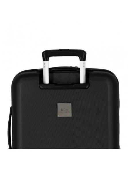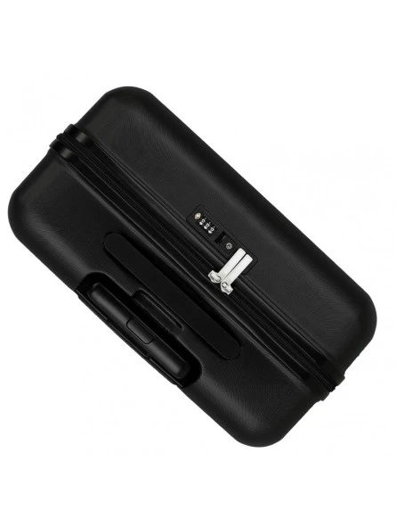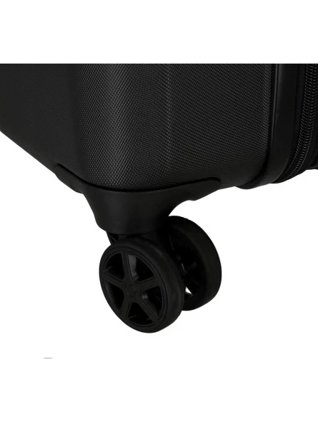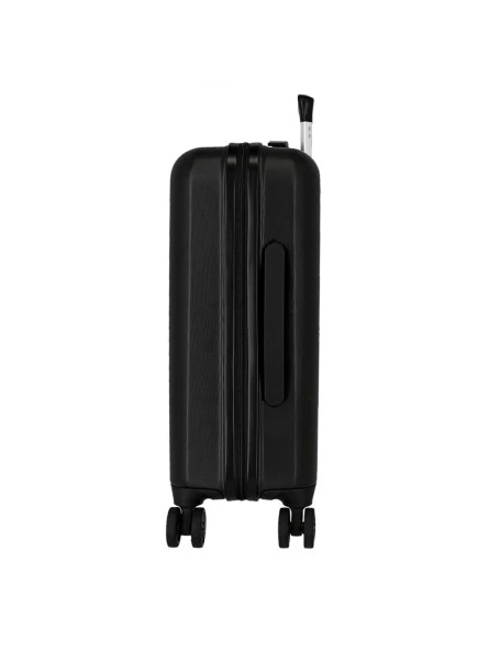 Maleta de cabina de 55x38x20 cm. (ruedas y asa incluida). Tiene una capacidad de 34 litros y pesa 2,6 kg. Fabricada en ABS, un material rígido y ligero.