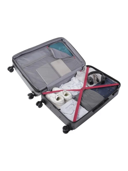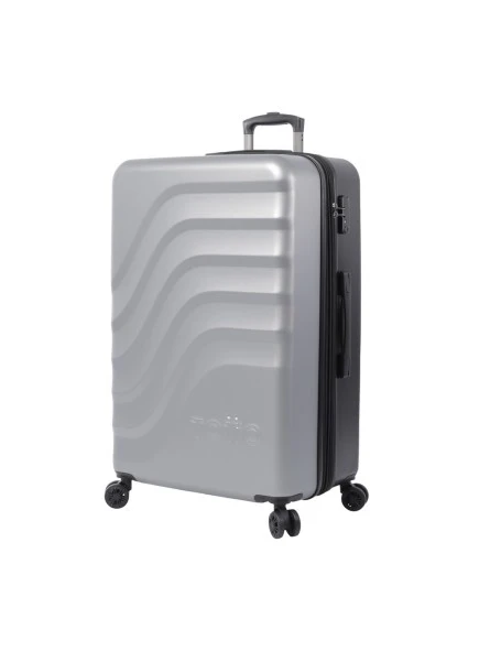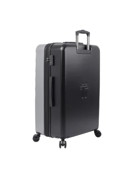 Maleta de viaje bicolor delantero plata y trasero negro con medidas exteriores de 78,8 x 30 x 51,8 cm