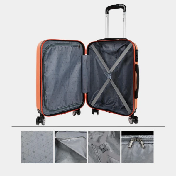 Desde sus inicios la marca ITACA esta a la vanguardia del diseño. Set de tres maletas trolleys tamaño 50/60/70 realizadas con ABS, un material ligero y a la vez resistente. Permite mayor maniobrabilidad con sus 4 ruedas giratorias 360° multidirección de suave rodamiento y su trolley telescópico con seguro hacen que su manejo sea más cómodo. Dispone de una cremallera con doble cursor y cerradura con combinación LOCK para una mayor seguridad. En su interior, contemplamos el forro personalizado de la marca, acorde al diseño exterior , con separación central. Contiene correas elásticas interiores que permiten la sujeción del contenido. Las maletas de 60 y 70 tienen un plus añadido al ser expandibles y aumentar el tamaño de la maleta en 5 cm.