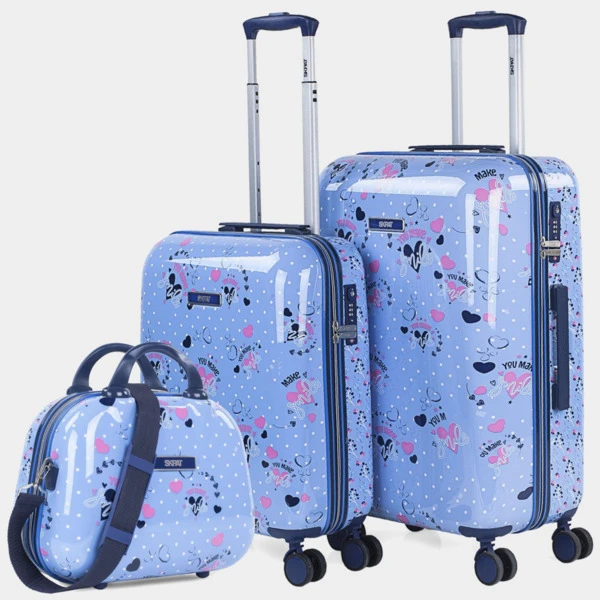Con más de 25 años de experiencia, SKPAT ha sabido mantenerse a la vanguardia en la fabricación y comercialización de productos para el viaje, en continua e incesante evolución, el equipo de diseño junto con el departamento de I+D+I no dejan de trabajar para ofrecer algo más que maletas y artículos de viaje. La elección de materiales, los organizadores, departamentos, accesorios y diseños, tanto estéticos como funcionales, son estudiados hasta el último detalle para dar solución a todas las necesidades que aparecen a la hora de planear un viaje. Set de dos maletas de viaje tamaño 50/60 realizadas con ABS/Policarbonato + 1 neceser de viaje Beauty. Fabricados en material ligero y a la vez muy resistente que permite la impresión de cualquier diseño, consiguiendo un acabado brillante precioso, este detalle da un aspecto diferenciador a la maleta que no te deja indiferente. Sus 4 ruedas dobles con giro de 360°, permite una manejabilidad total, facilitando enormemente el deplazamiento en