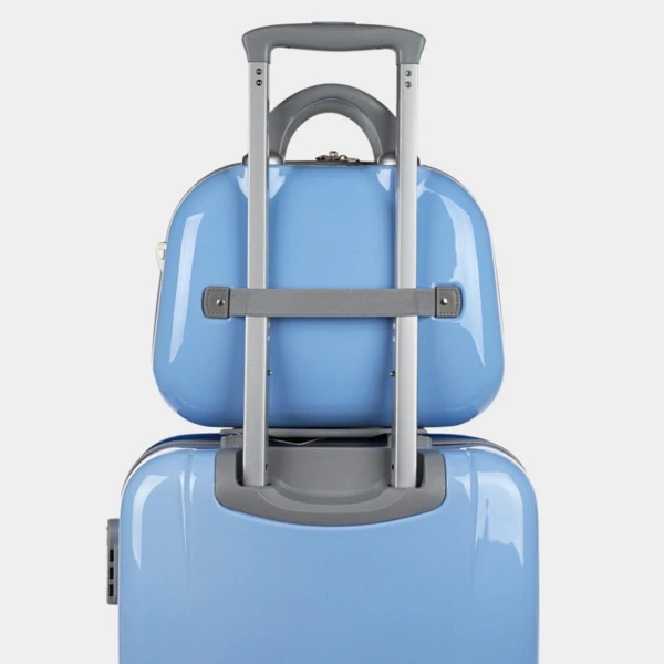 Juego completo set de maleta trolley mas neceser de la firma ITACA. 4 ruedas giratorias y mango telescópico. Forro interior. Compartimento separador con cremallera y bandas elásticas ajustables. Varios compartimentos. Set de maletas de viaje con ruedas. El Policarbonato es un material muy resistente y ligero, con un acabado brillante precioso, permite cualquier estampado dando como resultado maletas ligeras, juveniles prácticas, funcionales y versátiles, ideal para regalo para niños, niña, comuniones, cumpleaños… Maletas de viaje mediana y neceser. El interior está forrado con Nylon personalizado acorde al diseño de la maleta. Para la organización del equipaje cuenta con correas, bolsillos y cremalleras para asegurar la sujeción y el orden. Las 4 ruedas dobles aseguran un transporte fácil y manejable, el asa extensible adapta la maleta a cualquier altura de usuario . Medidas: 44x65x25 cm. Peso: 4,7 kg. Material: Policarbonato.