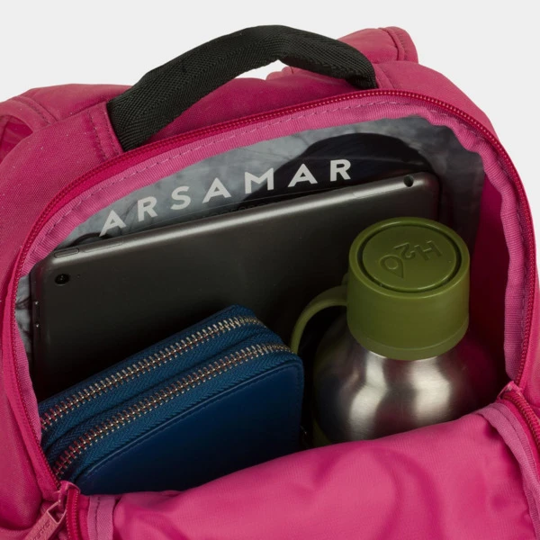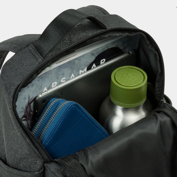 Exterior: Bolsillo frontal con cremallera. Compartimento principal con cremallera. Bolsillos laterales con cremallera. Correas ajustables.Espalda y tirantes acolchados, ergonómica, cómoda y ajustable.