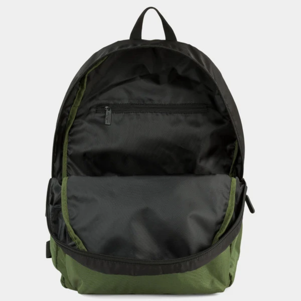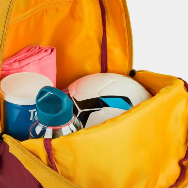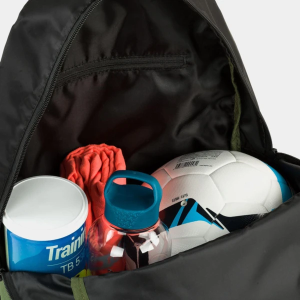 Exterior: 1 bolsillo delantero con cremallera, 2 tiras ajustables para la espalda y asa de mano superior.