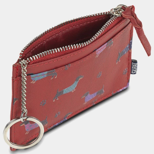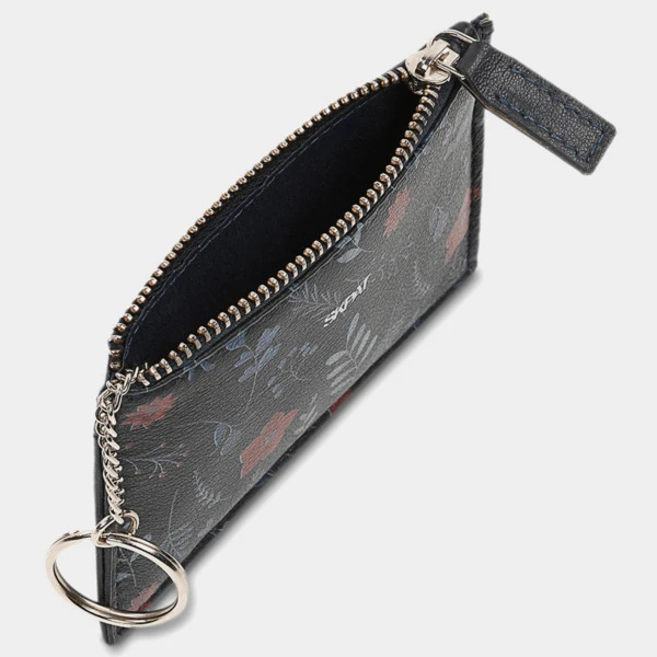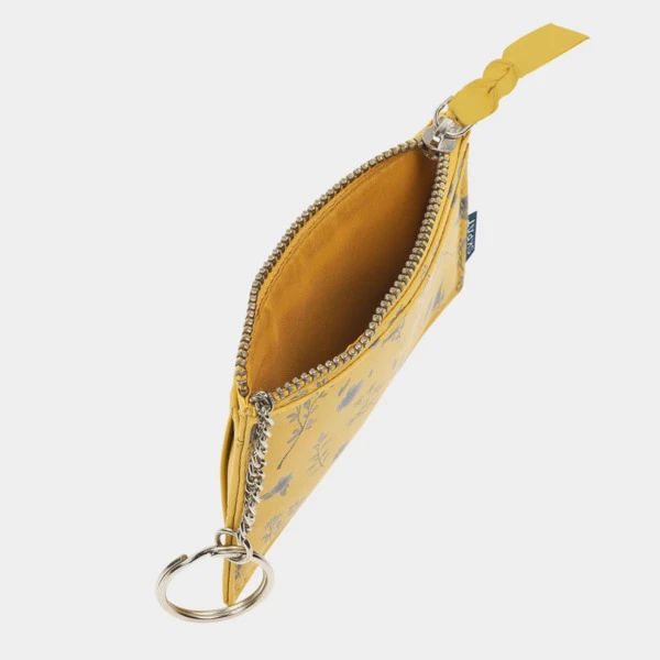 Características generales:Tiene un llavero interior y con 4 ranuras en la parte trasera para tarjetas y una en la parte delantera. Destaca sus cremalleras metálicas y el forro a tono.