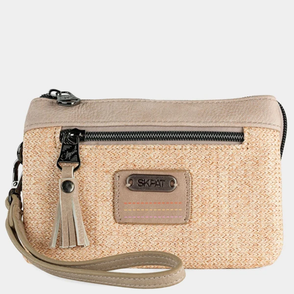 Cartera de mano triple de Poliéster/lona combinado con rafia y detalles en Ecopiel simil piel, para mujer de la nueva colección ANNECY de la marca SKPAT , ideal para usar todos los días.