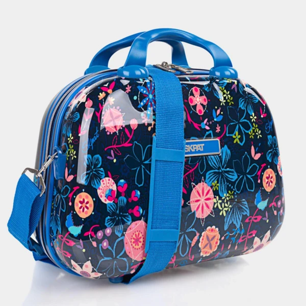 Neceser de la firma SKPAT. Cuenta con un cierre cremallera con doble cursor personalizado para facilitar su apertura.El diseño incorpora doble asa y una correa elástica trasera para la sujeción en el trolley de la maleta. Separador interior con espejo.